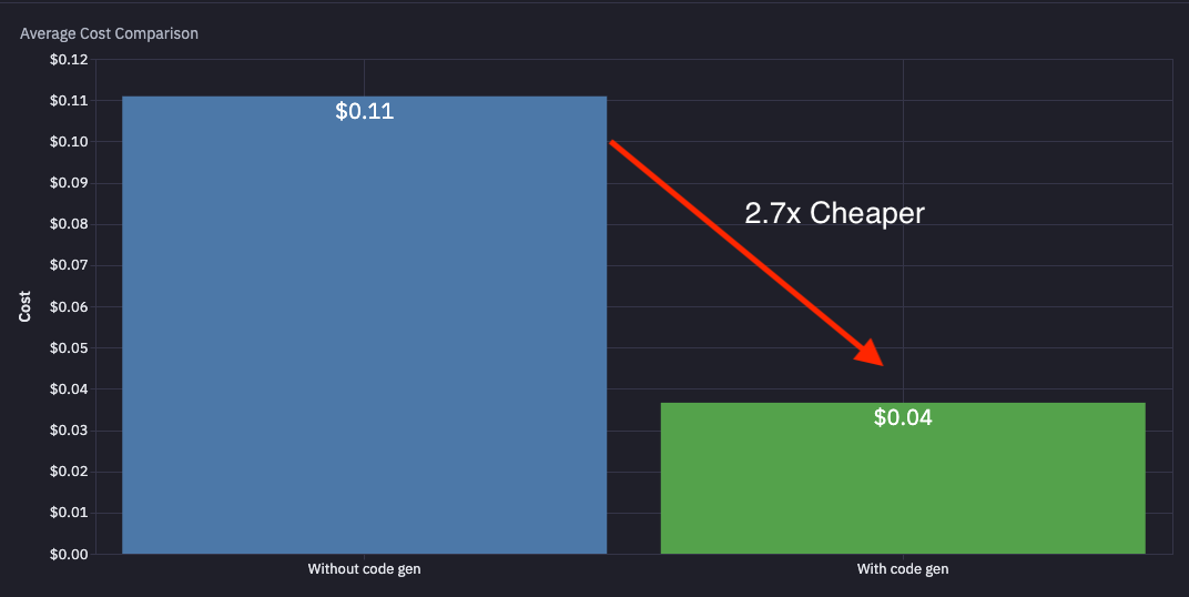 - Average run cost goes from $0.11 â $0.04 (2.7x cheaper)